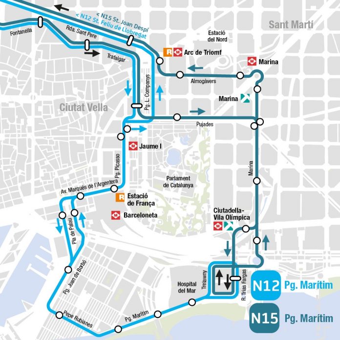 Urbanos Baix Llobregat ha mejorado los servicios de las líneas N12 y N15 desde el pasado 21 de junio, con una ampliación de los recorridos que llega hasta el Barrio de la Barceloneta y el Paseo Marítimo de Barcelona.